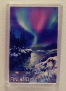 Northern Lights Ringing Under the Northern Lights – Day 47 – Daily Content Challenge My fridge magnet today shows one I bought while on my trip to Finland to play in an International Handbell Festival called Ringing Under the Northern Lights. I joined ringers from around the world and we held handbell concerts in Finland…